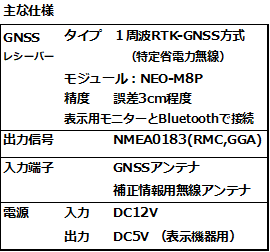 - 進路表示用のタブレットとGNSSレシーバーはBluetoothによる無線接続